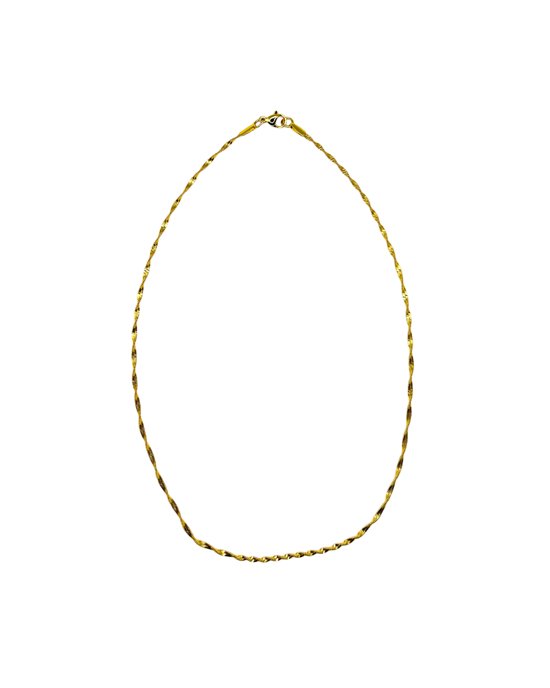 Crafted with a layer of 18k gold plating over high-quality stainless steel, this rope chain features a classic twisted design that catches the light with every movement. Sleek yet bold, it’s a versatile staple that can be worn on its own for a statement look or layered effortlessly with your favorite pieces. Tarnish-resistant and designed for everyday wear, it delivers lasting shine and a luxurious gold finish.