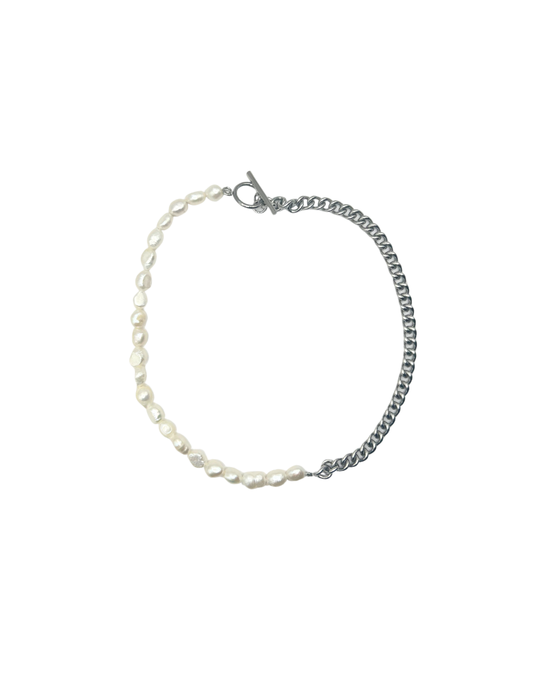 A bold fusion of industrial edge and classic elegance, this necklace features a rugged stainless steel chain paired with a lustrous freshwater pearl, symbolizing strength, balance, and sophistication. Handmade for a unique touch, each piece carries its own distinct character. Waterproof and tarnish-resistant, it’s designed for effortless, everyday wear.